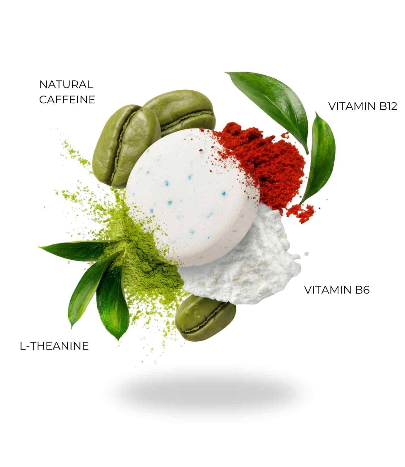 Energy & Focus combines natural caffeine, L-Theanine, and B vitamins to support smooth, focused energy. Caffeine helps promote alertness, L-Theanine balances stimulation for a calm focus, and B vitamins contribute to normal cognitive function helping you feel sharp and energised without the jitters.